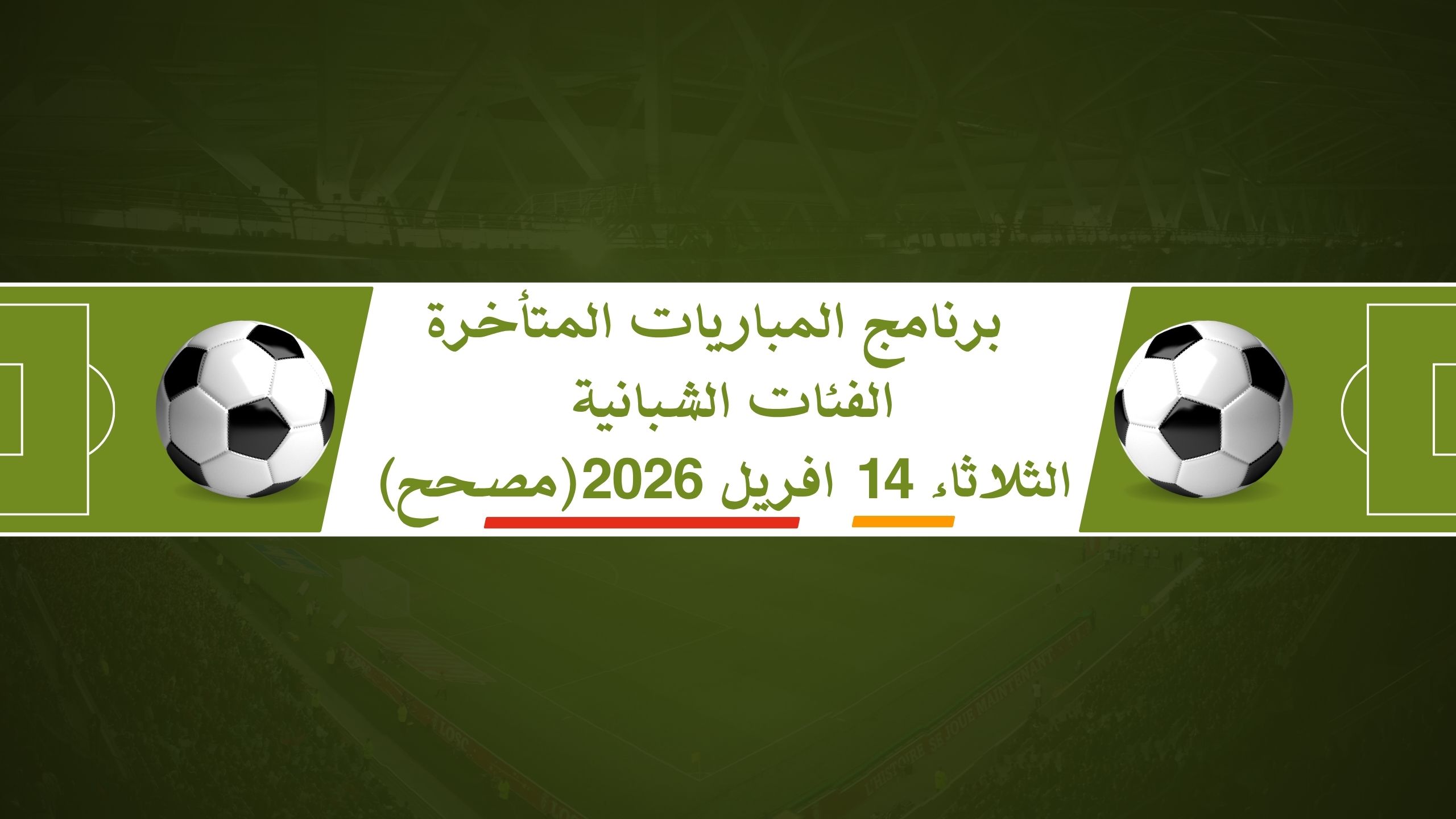 | برنامج المباريات المتأخرة الفئات الشبانية الثلاثاء 14 افريل 2026 |