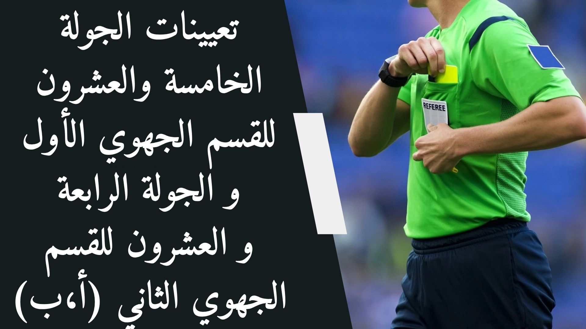 | تعيينات الجولة العشرون لبطولة الشبان (أ) و الجولة التاسعة عشر (ب،ج،د،هـ) و السادسة عشر المجموعة (و) |